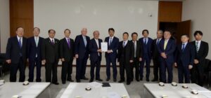 この日の政策大綱の提出には、両会長のほか、党県連から海野透会長、葉梨衛会長代行、田山東湖筆頭副会長、白田信夫幹事長、常井洋治総務会長、細谷典幸、小川一成、半村登、川津隆各副会長、黒部博英組織本部長、磯崎達也広報本部長が同席しました。
